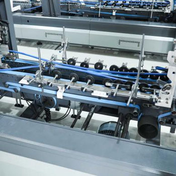 La machine plie le papier selon la forme souhaitée (par exemple, des cartons ou des boîtes) le long de lignes pré-percées. Différents mécanismes de pliage (plieurs à ceinture, à boucle ou à couteau pliant) assurent un alignement précis.